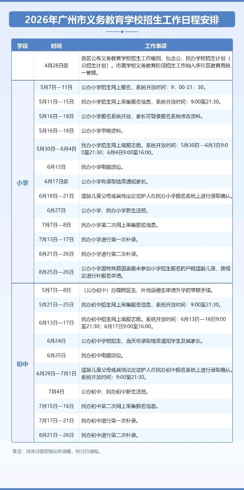 2026年广州中小学招生日程出炉!5月7号开始报名!