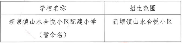 新塘镇山水合悦小区配建小学(暂命名)招生范围一览表