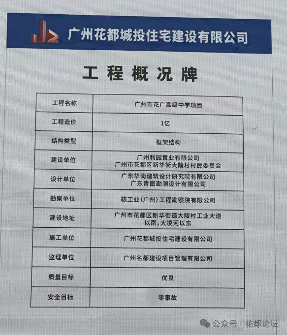 项目位于中建映花悦府旁,全称为广州市花广高级中学项目,工程造价约 1 亿元,建设地址位于新华街道大陵村工业大道以南、大凌河以东。