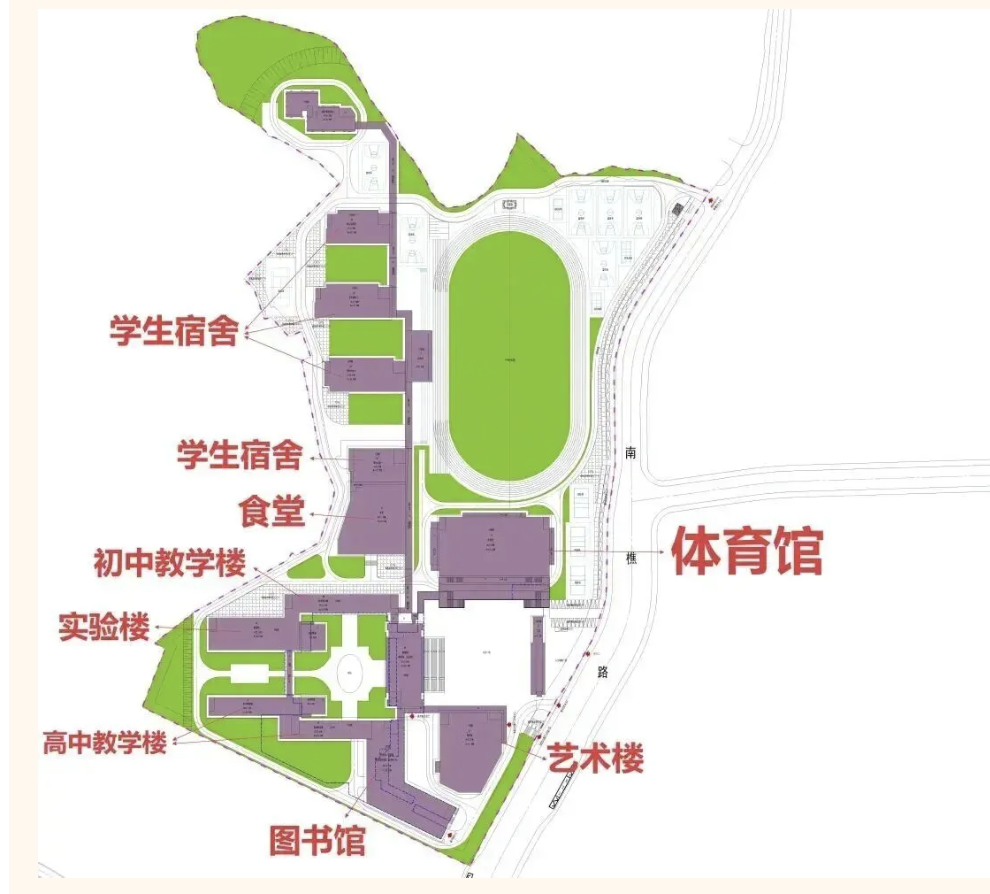 该学校硬件建设标准对标玉岩创校基准,将打造全省一流教学环境,九年制共72个班,预计2026年秋季学期具备开学条件。